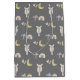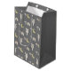 Envuelva regalos para bebés con esta bolsa de regalo dulce Giraffe & Rainbow. Patrón de acuarela por Night Sky Paperie. La jirafa está acompañada por la luna, un arco iris, corazones flotantes y un ramo de flores con forma de corazón. La bolsa es gris oscuro. Diseñado para coincidir con nuestro papel de envoltura Giraffe & Rainbow y tarjeta de bienvenida. Seleccionar diferentes tamaños y acabado mate o brillante