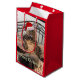 Esta adorable bolsa de regalo muestra a mi gran y guapo gato siberiano llamado Kimber usando un sombrero de Papá Noel. Capturado cuidándose a sí mismo, Kimber tiene una mirada muy sorprendida en su cara. Sus piernas están esparcidas, sus pies grandes se aferran a sus lados, y su cola larga y esponjosa se extiende directamente delante de él. Con las palabras, "Feliz Navidad", esta maravillosa bolsa de regalo sin duda añadirá a la entrega de regalos y a la recepción de alegría esta fiesta.