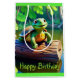 Esta bolsa de regalo de cumpleaños incluye una linda tortuga feliz soleándose en un tronco.