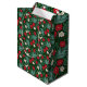Los Navidades brillantes apuntan en una bolsa de regalo a juego.