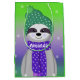 Bolsa de regalo para el diseño de la eslora de invierno colorida con color de fondo de personalizable (en los lados y abajo) y texto.