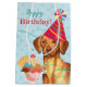 Felices saludos de cumpleaños con este lindo diseño que incluye una linda Vizsla, vestida por un gorra fiesta, con un helado sundae. "Ten un buen cumpleaños" delante y "Feliz cumpleaños" detrás. El texto se puede cambiar fácilmente; sólo tiene que hacer clic en el botón personalizar.