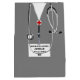 Bolso de regalo creativo médico con exfoliaciones de hospital grises, estetoscopio y graciosos cuchillo del ejército suizo. Editar texto para agregar el nombre del médico.