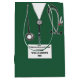 Diseño creativo de bolsos de regalo médica con exfoliaciones de hospital rojas, estetoscopio y graciosos navíos del ejército suizo. Editar texto para agregar el nombre del médico.