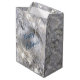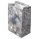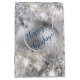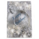 Elegante bolso de regalo para Navidades con Navidades plateados bauble, luces brillantes blancas, oropel y espacio para tu texto. Si necesitas ayuda con este diseño, no dudes en contactarme.