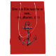 Bolsa de regalo en rojo con ancla vintage y una cita náutica antigua "El tiempo y la marea no esperan a ningún hombre".. - St. Marher, 1225