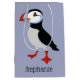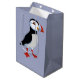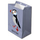 Bolsa de regalo de diseño Puffin con color de fondo de personalizable y personalización opcional.