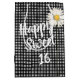 Daisy blanco sobre el patrón de gingham blanco y negro para el dulce de 16 años. El texto es editable.