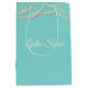 Haga su regalo aún más especial con esta lujosa bolsa de regalo personalizada que presenta un elegante diseño de perlas en un hermoso fondo turquesa. Añada un nombre para un toque único y sofisticado, haciéndolo perfecto para cumpleaños, bodas, aniversarios o cualquier ocasión especial. Esta bolsa de regalo, elaborada con materiales de alta calidad, es a la vez elegante y robusta, lo que garantiza que su regalo esté bellamente presentado. ¡Aumente su experiencia de regalo con esta solución de embalaje de moda y premium!