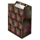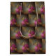 Esta bolsa de regalo incluye una mariposa recolectando néctar de una flor rosa de zinnia.