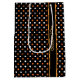 La elegante bolsa de regalo con puntos de polka en naranja y negro es una manera elegante de decir feliz caída.
