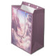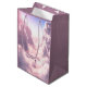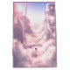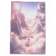 Un globo aerostático solitario flota a través del cañón rosa pálido entre nubes imponentes. El sol, bajo en el cielo pastel, brilla detrás del borde de las nubes, enviando corrientes de luz brillante hacia el espectador.
