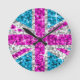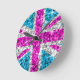 Enarbole pabellón BRITÁNICO con este diseño de Union Jack de la diversión que ofrece las estrellas dispersadas sobre "un fondo estilizado del modelo de la mirada de la lentejuela". Reloj de pared con un rosa, un blanco, un gris de plata y un diseño adaptable del azul para que usted personalice con su propio texto, imágenes e ideas. Otras opciones del estilo disponibles. Observe por favor esto es una imagen digital impresa del arte, no brilla ni contiene el purpurina o lentejuelas real.