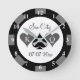 Reloj de chip de casino redondo regalo de boda personalizado. Personalizado diseño de moneda de marca de fichas de póquer para matrimonio en la ciudad de Sin o en otro lugar. Disco de juego personalizado con iniciales de nombre monogramado de pareja novia y novio. Juego jugando a los símbolos de cartas diseño con rey y reina de corazones y espadas. Elegante diseño de plantilla de tipografía de script con nombre de destino de ubicación de personalizado. Divertido casino de juegos de azar decoración de casa. Colores en blanco y negro.