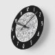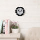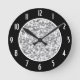 Reloj de pared con un diseño moderno con estrellas diseminadas sobre un estilizado fondo de "secuin look" en tonos gris plateado, con un borde negro. Se puede usar como fondo para tu propio texto, imágenes e ideas. Hay otras opciones de estilo disponibles. Tenga en cuenta que se trata de una imagen de arte digital impresa, que no brilla ni contiene purpurinas o secuencias reales.