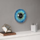 Iris De Ojos Azules © Sunny Mars Designs. Guay, personalizado divertido imprimió el tamaño medio del globo ocular azul con un moderno, moderno, hermoso, único, raro, escalofriante, extraño y retorcido ilustracion gráfico de un sorprendente y realista iris de ojo. Para ver todos los relojes de pared de ojos y ojos de color, haga clic en la imagen de abajo: