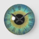 Iris del ojo azul - BLEI100 el © Marte soleado diseña. Refresqúese, reloj redondo azul impreso personalizado de los números romanos de la talla media del globo del ojo de la diversión con un ilustracion gráfico de moda, moderno, hermoso, único, extraño, espeluznante, extraño y torcido de un iris realista azul grande llamativo del globo del ojo de un ojo.