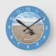 Tortuga marina en el reloj de la pared personalizado azul de la playa.