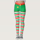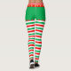 Medias a rayas rojas, verdes y blancas de Navidad con tréboles dorados.