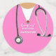 Decoración creativa de fiestas de salud para la celebración de graduados de médicos o escuelas de medicina que incluye exfoliaciones rosadas de hospital y estetoscopio. Para personalizar el texto de edición para agregar el nombre del médico.