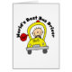 Un gran autobús escolar amarillo con un conductor de autobús con una figura de palo y un texto que dice "Mejor Conductor de Autobús del Mundo" en regalos para conductores de autobús, camisetas y otros artículos.