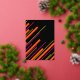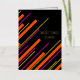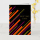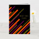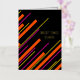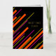 Rayas diagonales brillantes sobre un fondo negro con "MEJOR PAPÁ DE LA HISTORIA" en Relieve metalizado dorado. Esta es una retro-inspirada por la carta mínima del Día del Padre de los ochenta.