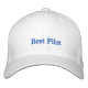 Gorra mostrado en blanco con el texto bordado en azul: Mejor piloto. Personalizar este artículo o compra tal cual.