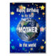 ¡Celebra a tu madre con un toque cósmico! Esta tarjeta presenta una vista impresionante de la Tierra desde el espacio, con el mensaje más sincero: "Feliz cumpleaños a la mejor madre del mundo". Una manera perfecta de mostrar lo que significa para ti, sin importar la distancia, ella es siempre tu número uno.
