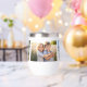 Un regalo súper divertido para las madres, las abuelas o cualquier persona especial en tu vida. Añade fácilmente 3 fotos y 2 líneas de texto personalizado a estos hermosos tumblers de vino o café. El texto actual dice "Mejor Mamá Nunca - Nombre" pero cambia fácilmente a cualquier texto de su elección. Hace un regalo maravilloso por el Día de la Madre, un regalo de cumpleaños o un regalo diario.