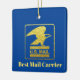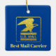 Este adorno tiene una silueta dorada del símbolo del águila postal. A continuación se muestra el "Mejor transportista de correo" y representa a un cartero de sexo masculino o femenino. Puede cambiar el texto para decir otra cosa si lo desea. En la parte trasera, personaliza esto con un nombre y un año. Hace un regalo divertido para alguien que conoces que es un mensajero o que trabaja en la oficina de correos. Debido al estilo de diseño, sólo se puede comprar en los adornos SQUARE. Diseñado por Sheila Cicchi, Brownielocks.com. Todos Los Derechos Reservados.