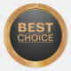 Pegatina metálico de bronce con el texto "Mejor Elección" en el centro, "Garantía de Satisfacción" curvado en la parte superior. Personalizar a este pegatina con su información personal o de negocios.