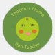 Esta impresionante hoja de pegatinas presenta una manzana verde brillante con una gran sonrisa ancha y mejillas rojas rosadas. Hay un texto de personalizable alrededor de la manzana para que usted añada el nombre de su profesor y un mensaje especial para él o ella.