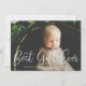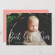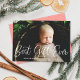Esta tarjeta de anuncio de nacimiento para las vacaciones, dulce y moderna, presenta un texto de caligrafía blanca sobre una sola foto horizontal de sangrado completo. El saludo con texto de caligrafía en la parte delantera dice "El mejor regalo de todos". Este diseño acomoda una sola foto horizontal en la parte delantera de la tarjeta. En el reverso encontrará un festivo patrón de franjas horizontales rojas y blancas que se puede quitar o personalizar. También puede agregar otra foto o texto en la parte posterior seleccionando "personalizar diseño aún más".
