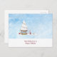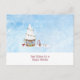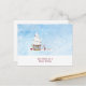 Postal de vacaciones con una casa gnomo con las palabras "Los mejores deseos de una feliz festividad". El texto es totalmente editable.