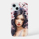 Pintura original en color agua de Melanie, una bella chica a la que le encantan las flores del cerezo.
