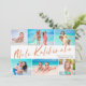 Envía alegría esta temporada navideña con estas divertidas y modernas tarjetas de Navidad de seis fotos en collage. ¡Son perfectas para mostrar tus fotos favoritas de tus vacaciones tropicales! La tipografía dice "Mele Kalikimaka" en un tono naranja / coral suave, y la parte trasera de la tarjeta contiene un patrón de hojas tropicales a juego en azul, verde menta, coral, rosa, beige y aqua. Simple, moderno y colorido: seguro que alegrará el día de cualquiera.