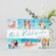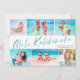 Envía alegría esta temporada navideña con estas divertidas y modernas tarjetas de Navidad con collage de seis fotos. ¡Son perfectas para mostrar tus fotos favoritas de tus vacaciones tropicales! La tipografía dice "Mele Kalikimaka" en verde aqua claro, y la parte trasera de la tarjeta contiene un patrón de hojas tropicales a juego en azul, verde menta, coral, rosa beis, beige y aqua. Simple, moderno y colorido: seguro que alegrará el día de cualquiera.