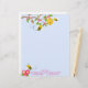 Este adorable membrete incluye una rama de hermosas flores rosas en la parte superior y un pequeño grupo en la parte inferior. Hay una colmena de abejas colgando de la rama y dos abejas están zumbando. Otra abeja está a punto de aterrizar en las flores de abajo. El fondo es un cielo azul bonito. Ideal para mujeres o niñas que aprenden a escribir cartas.