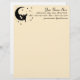 Una silueta de un hada sentada en la luna, rodeada de estrellas. Edite las líneas de texto para incluir su nombre, dirección, número de teléfono y dirección de correo electrónico. Siéntase libre de cambiar el color del papel a.