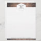 Coordina con la plantilla de tarjeta de presentación del logotipo de la horquilla cruzada rústica para la tarjeta de presentación de Wood II con problemas a más tardar a las 12.00 horas. Una insignia de estilo vintage con un logotipo de bifurcación cruzado y cuchillo combinado con tu nombre o nombre comercial se convierte en una marca única en este diseño personalizado de membrete. Colocado en una imagen de fondo de madera marrón y angustiada para un ambiente rústico, con mucho espacio blanco abierto para imprimir correspondencia, facturas o marketing. Perfecto para empresas de restauración, chefs, restaurantes, camiones de comida, negocios de planificación de comidas y más. © 1201AM