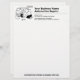 Automotive Reparación De La Cabecera De Negocio De Garage Services. Usar como plantilla de membrete para su propio negocio. Imagen divertida muestra a un mecánico trabajando en reparar un auto en una tienda de autos.