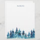 Membrete Azul verde del bosque de pinos dibujado a mano