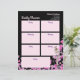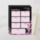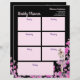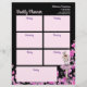 Diseñada sobre la base de mi ilustracion acuarela, una bailarina bailando vestido de rosa en sus zapatos de pie. El diseño tiene un patrón de corazones sobre fondo negro. El diseño es para planificador semanal dividido en siete secciones diarias y puede ser personalizable con sus propios textos.