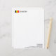 Un membrete de negocios con una bandera colocada a 1/2" de la izquierda y de arriba. Nombre de la empresa y tipo de negocio, lema o cita a la derecha de la bandera. Dirección, Web/email y datos de telefonía en la parte inferior aproximadamente 1/2" desde la derecha y aproximadamente 1/4" desde el borde inferior. Esta plantilla está lista para ser personalizada con sus detalles. El diseño se puede personalizar de diversas maneras.