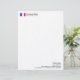 Un membrete de negocios con una bandera colocada a 1/2" de la izquierda y de arriba. Nombre de la empresa y tipo de negocio, lema o cita a la derecha de la bandera. Dirección, Web/email y datos de telefonía en la parte inferior aproximadamente 1/2" desde la derecha y aproximadamente 1/4" desde el borde inferior. Esta plantilla está lista para ser personalizada con sus detalles. El diseño se puede personalizar de diversas maneras.