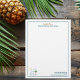 This cute tropical real estate company letterhead features a modern blue beach house with a cool coastal palm tree and island sun. Customize this marketing paper with your agent and realty business name for a realtor who works along the coast.