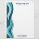 Blue and teal waves form a border on the left side of this letterhead for a surf shop. Could be used for any business related to water, from hot tubs and spas to seafood restaurants, or a beachside resort.
