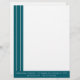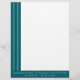 Clásico, sencillo y elegante, este membrete presenta bordes verde azulados oscuros en el lado izquierdo y en el fondo, con dos estrechas rayas plateadas en el lado izquierdo. La información para el negocio está en el fondo en texto plateado. Muy afilado, profesional y atemporal, y fácilmente adaptable a una variedad de negocios y profesiones.