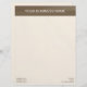 This very simple and professional looking letterhead has a brown banner at the top on a beige background. Text at the top is in the same beige as the background, and business information at the bottom is the same brown as the banner. The back is plain beige, without the banner.