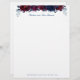 A watercolor floral letterhead stationery featuring watercolor-painted sapphire blue and burgundy peonies with navy blue eucalyptus greenery.